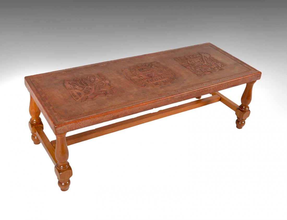 PERUVIAN HEAVILY TOOLED LEATHER COFFEE TABLE