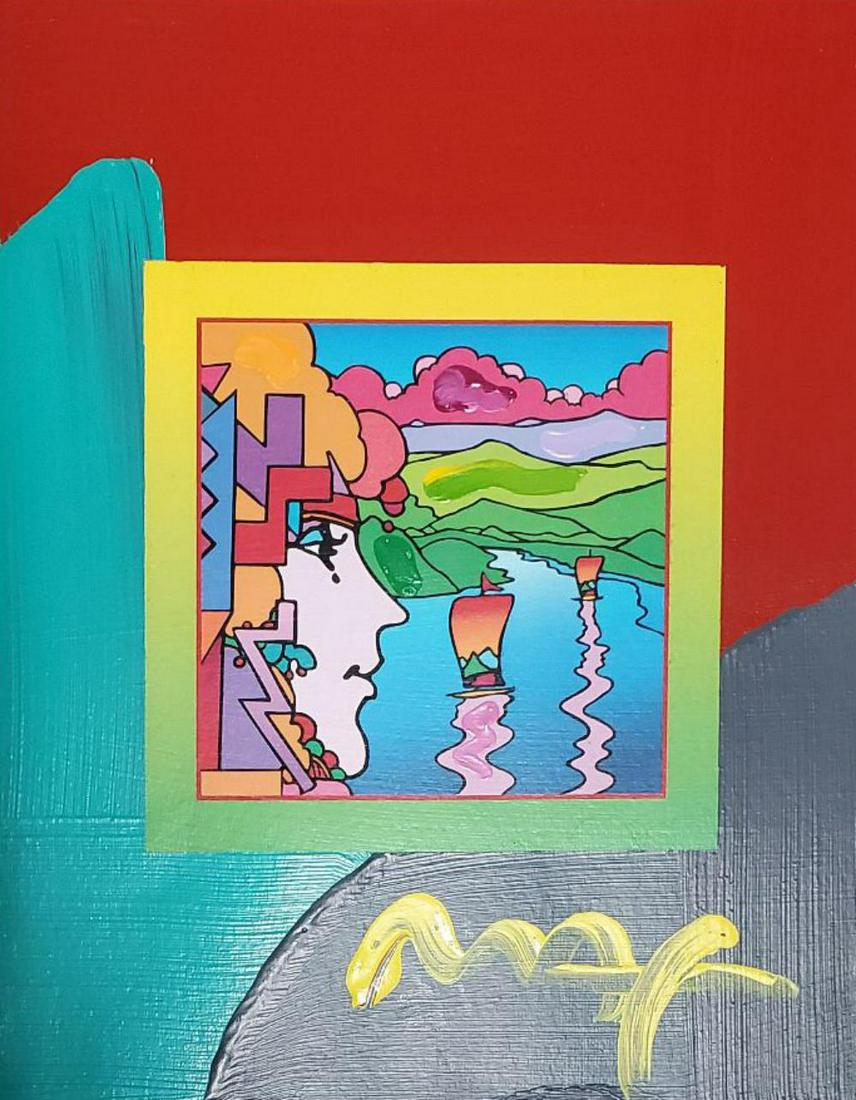 Peter Max, "Geometric Sailboat" original mixed media