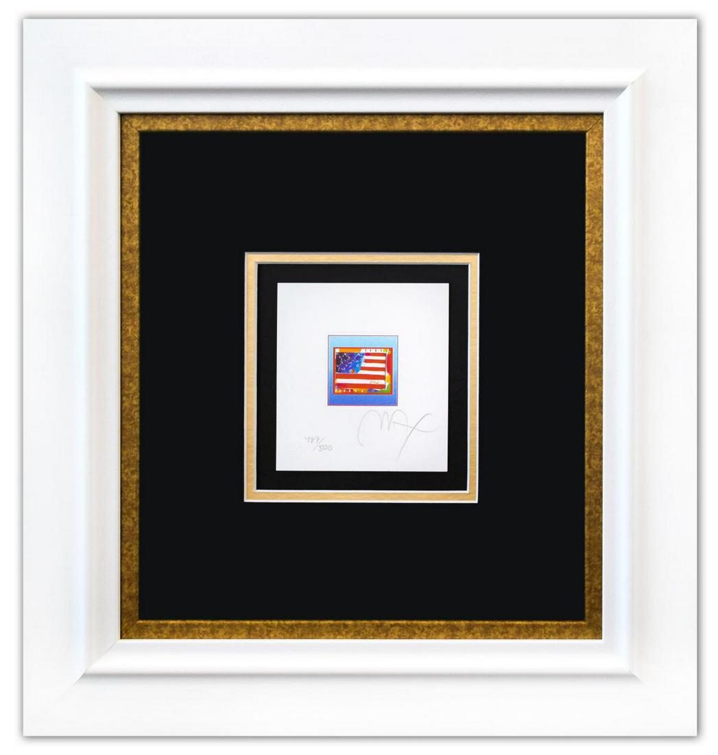 Peter Max- Original Lithograph "Flag with Heart on Blue (Mini)"