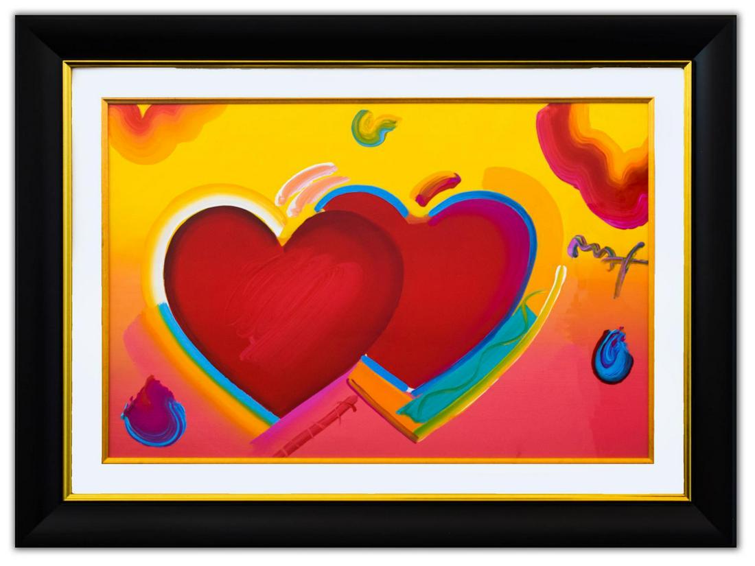 Peter Max- Original Mixed Media "Two Hearts As One"