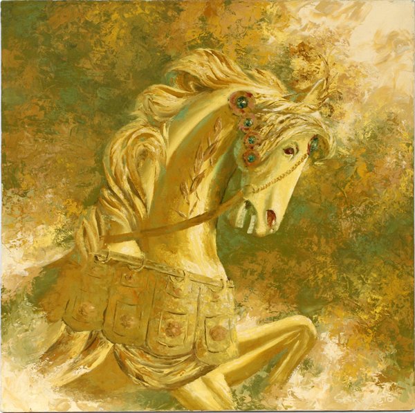 PETER SCHOFIELD OIL ON CANVAS, CAROUSEL HORSE