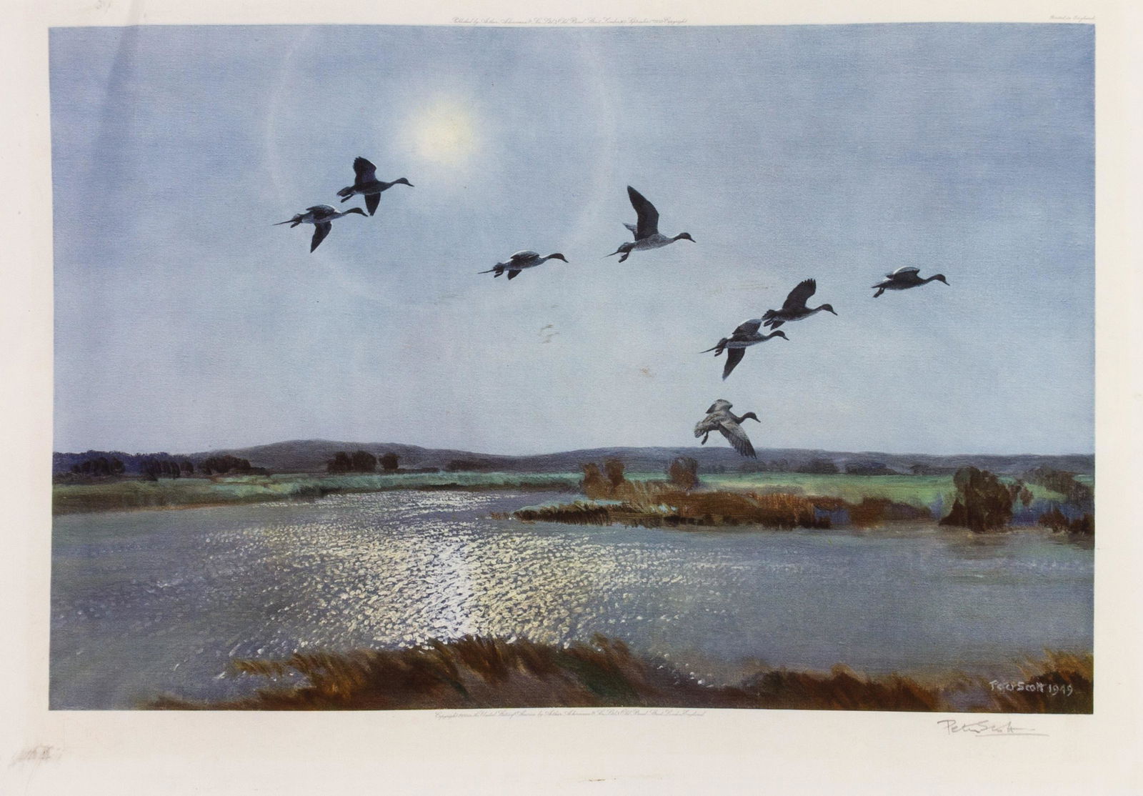 Peter Scott Signed Lithograph Flying Geese Landscape
