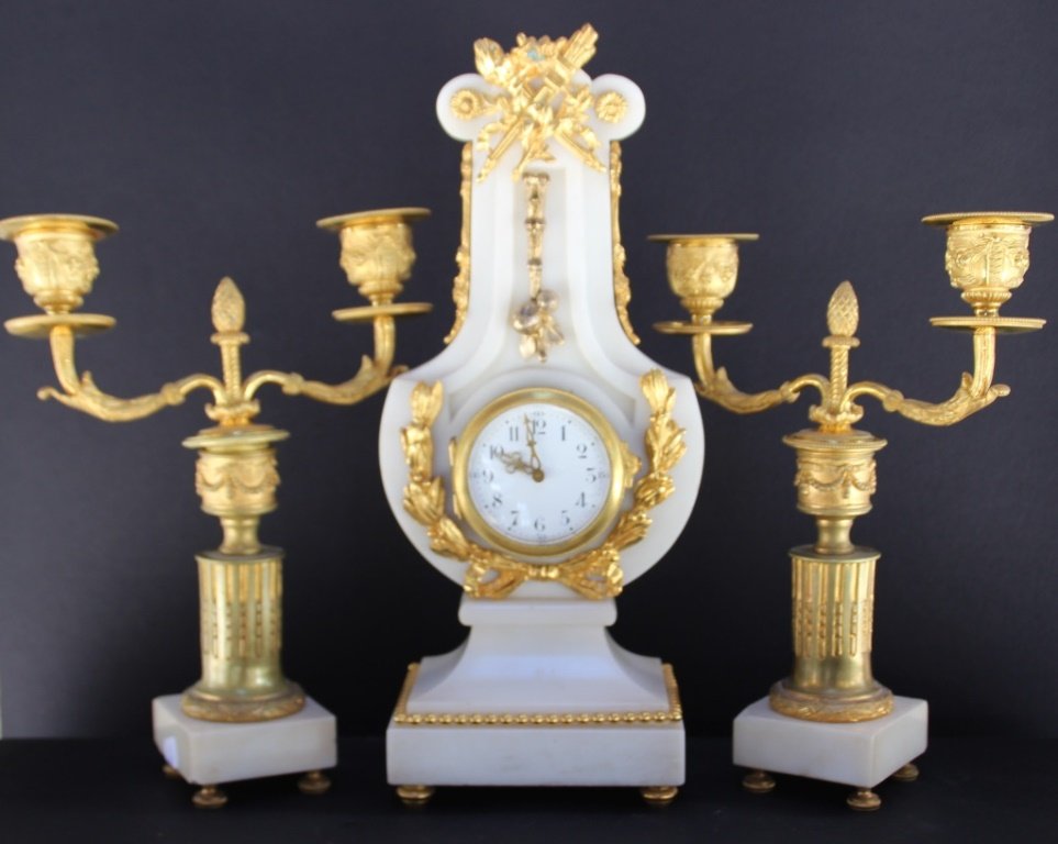 Clock with a Pair of Candelabra, Bronze, RococoMar 17, 2026Gothic Clock with a Pair of Candelabra, 19th centuryMar 17, 2026Gilt Bronze Garniture Louis Xv Style113 Lots AwayFRENCH LOUIS XVI STYLE BRONZE AND MARBLE BOUDOIR CLOCK SET6 days LeftFrench Clock SetMar 14, 2026French Bronze Mantle Clock and Candelabras, Ca. 19th C., H 20" 3 PCSMar 19, 2026| KAMINUHR-ENSEMBLE MIT GIRANDOLEN IM LOUIS-XVI-STILMar 12, 2026LOUIS XVI STYLE PINK MARBLE AND ORMOLU CLOCK SET CICA 19007 days LeftFrench AD Mougin Garniture SetMar 11, 2026A French gilt metal and alabaster clock garniture, c.1890,| EMPIRE PENDULEMar 12, 202619TH C. BRONZE AND WHITE MARBLE FIGURAL CLOCK7 days LeftFRENCH LOUIS XVI STYLE BRONZE AND MARBLE CLOCK SET6 days LeftTiffany and Company Brass Roman Numerals French Baroque Style Mantle Clock Five Light Candelabra SetMar 17, 2026| DIRECTOIRE PORTALUHRMar 12, 2026Large portal clock, France 1820-1850,Mar 14, 2026