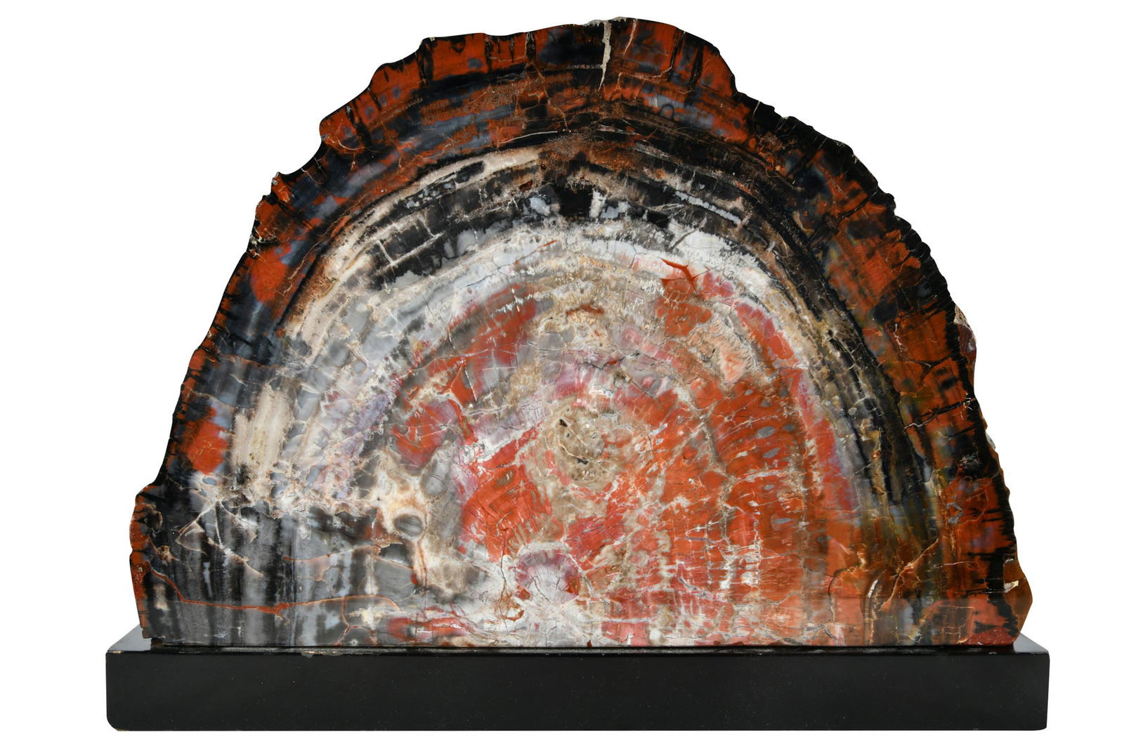 SoldGEOLOGICAL PETRIFIED WOOD SPECIMEN ON ACRYLIC BASEPetrified wood slice, mounted on colorless acrylic base, specimen: approx 12"h, 15"w, 0.75"d, overall: approx 13.5"h, 15"w, 4"d, 8.5lbsSee Sold Price