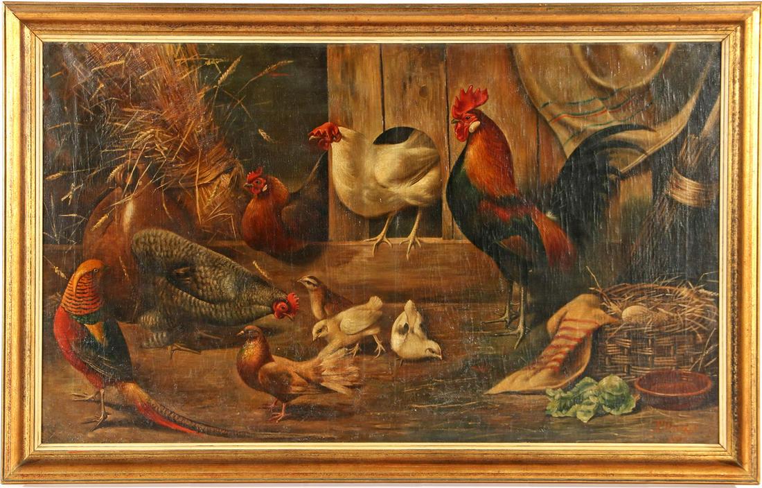 Federico Sulroca Spencer, Oil on canvas.Feb 25, 2026Oil painting Chickens Near the Yard Oksana IvanyukCharles Andrew Hafner (NY,NE,1888-1960) oil painting6 days LeftATTRIB Gaston Dubois (France,19/20C) oil painting antiqueMay 03, 2026Vintage 20C European oil painting signed6 days LeftCornelis VAN LEEMPUTTEN (1841-1902) "Chickens in the barn", an antique oil on panel paintingFeb 24, 2026Antique 19th C. Farmyard Oil Painting on Panel, Chickens & Rooster5 days LeftA.D. Nowey, Barnyard Scene1 day Left19th Century H. Schouten Oil Painting of Chickens in Gilt Frame7 days LeftManner of Edgar Hunt Chicken Coop Oil on PanelMar 19, 2026Continental School2 days LeftAlbertus Verhoessen. 1878. Landscape with turkey and chickens. Signed and dated lower left. Oil onMar 01, 2026American Folk Art Painting of Chickens by Horiz 48x30Mar 02, 2026Paul Frederich Meyerheim Still Life with Fowl Painting 1888 Oil on Board Signed GermanyFeb 26, 2026J.H. Dolph, Chickens & Ducks1 day LeftENGLISH SCHOOL (19TH CENTURY), A PAIR OF STILL LIFES OF BIRDS AND FRUITMar 03, 2026