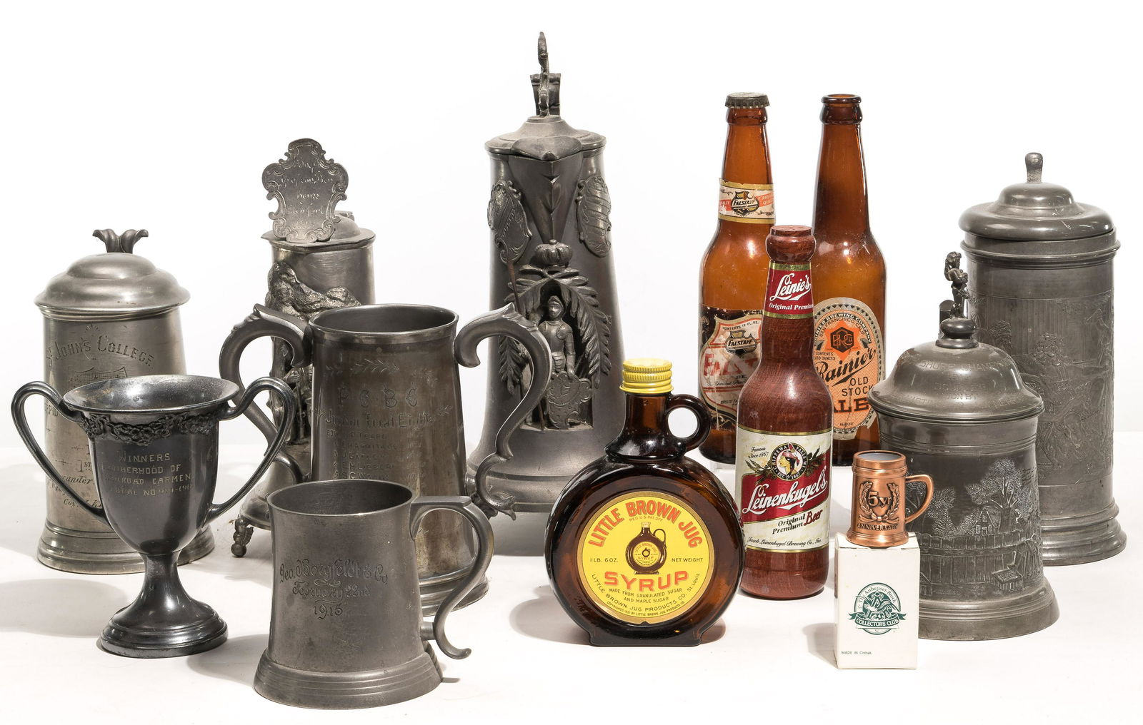 Lot of 48 Pewter, Mugs, Plates, Porringers & MoreFeb 21, 2026Lot of sterling silver dresser accessories, including various covered glass jars and scent bottles.Mar 01, 2026Vintage Pewter Tableware Lot: John Somers, Wilton Columbia, Empire, KSFeb 22, 2026Lot of sterling silver accessories and tableware. To include: Chinese wise man figural shakers, O.Mar 01, 2026[ART] (14) Large Lot of 19th c. Glass Flasks, Bottles and Earthenware JugsMar 05, 2026Collection of silver consisting of pepper and salt shakers, jugs, bell, bowl and statue of a boy,2 days LeftFOUR DECORATIVE BEER STEINS AND PEWTER STYLE MUGS4 days LeftAmerican Sterling Silver Baby Mug, Money Clips, Napkin Ring, and Box20 hrs LeftGroup of Assorted Advertising Beer Steins2 days LeftFour silver plated bar articlesMar 03, 2026Five Assorted Steins and One Porcelain Liquor Bottle, Jimmy Carter ProvenanceFeb 25, 2026A Group of Sterling Silver DecorFeb 25, 2026Collection (12) tankard trophies7 days LeftGerman Steins2 days LeftSterling Silver Hollowware AssortmentFeb 24, 2026ANTIQUE AND VINTAGE SILVER PLATED TABLEWARESFeb 22, 2026