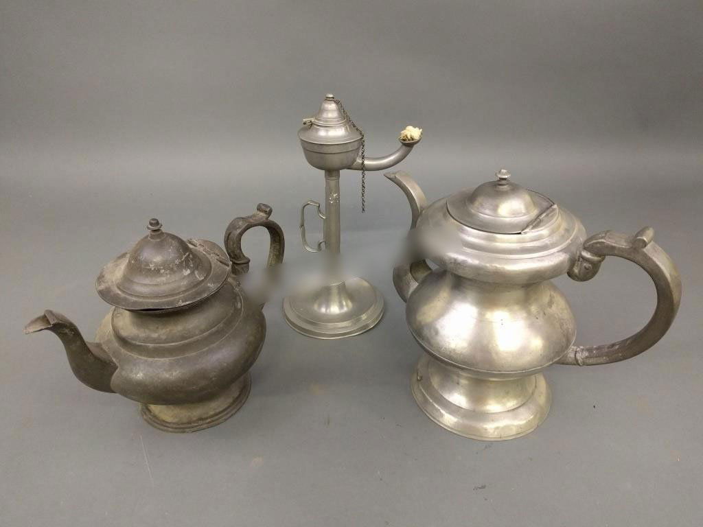 (Lot of) 3 Sterling Silver Service Items, 2 by Emil HermannFeb 22, 2026Set 3 Federal Pewter Creamer, Sgr Bwl & Teapot4 days LeftWilliam Hunter 1842 Sterling Teapot Set of ThreeFeb 28, 2026Vintage WM A Rogers Silverplated Tea Pot & CreamerFeb 25, 2026William McQuilkin Coffee Pot and Pewter TeapotFeb 27, 2026A Four-piece Silver Tea and Coffee Service, possibly PeruvianFeb 21, 20263 pcs Vintage Silver Plated Tea Pots, incl. 1x W.W.H. & Co. & 1x Homan. Very Good Condition.3 pcs Vintage Silver Plated Teapots, incl. Homan, Essay & Colonial Co. Good Condition.3 pcs Vintage Silver Plated Tea Pots, incl. 1x Brooklyn & 1x Aurora? Co. Very Good Condition.3 pcs Vintage Silver Plate Tea Pots, incl. 2x Silver on Copper Pieces. Very Good Condition.A silver coffee pot and hot water jug,ANTIQUE ENGLISH ARTS AND CRAFTS PEWTER TABLEWARE SETMar 01, 2026W. Forbes Three Piece Coin Silver Tea Set4 days LeftComplete four-piece silver service by Wolfers Frères (Brussels), consisting of a teapot, coffee1 day LeftA group of silver plated coffee pots and a sterling silver pitcherMar 03, 2026Silver coffee pot model 'Egoist' with poinçon Minerve (bottom and in lid) with ebony handle and1 day Left