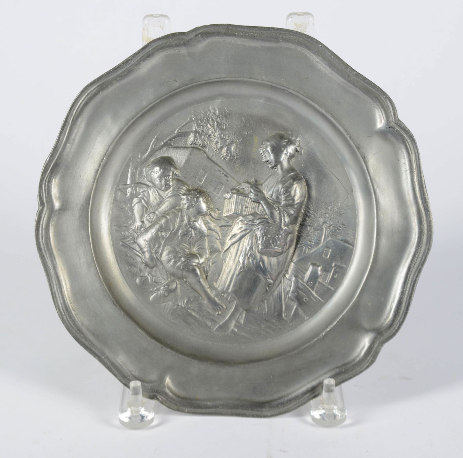 Pewter Plate With Raised Decoration.