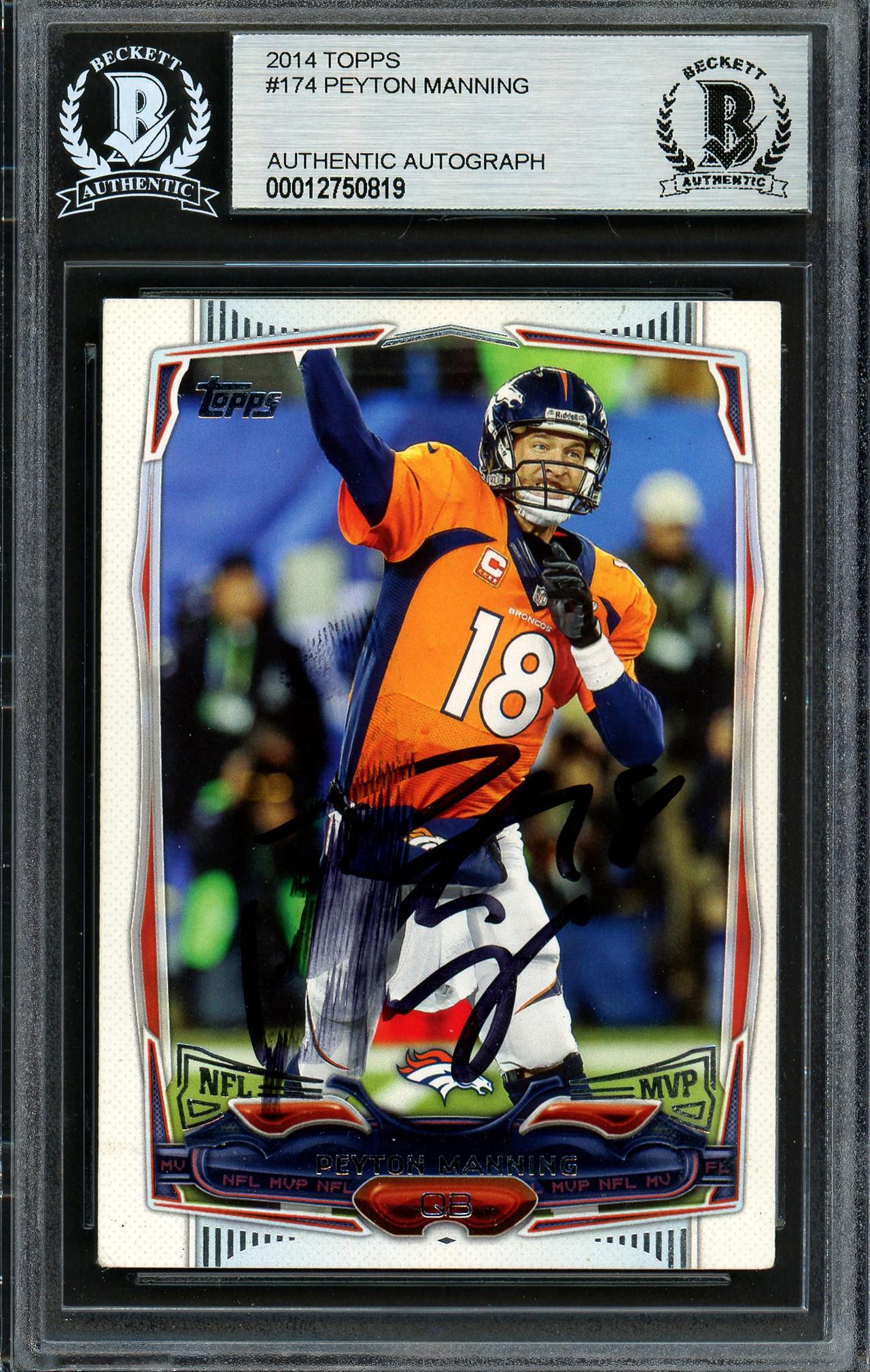 Sold2002 Peyton Manning Signed Insert Card2002 Peyton Manning signed insert card American Authentics Level 1. Authenticated and encapsulated by Beckett Authentication Services. Arrived scratched from BAS and Beckett will reholder for no chargSee Sold Price