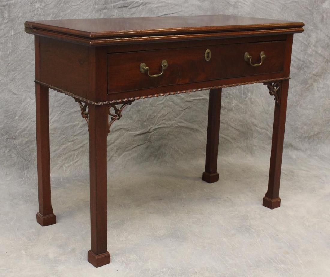 George III Mahogany Console Table6 hrs LeftPhiladelphia Chippendale Figured Mahogany One Drawer Pembroke TableFeb 25, 2026American Chippendale Mahogany Pembroke TableFeb 25, 2026CHIPPENDALE STYLE MAHOGANY PARTNERS DESKMar 07, 2026Federal Mahogany Card Table, c. 1810Feb 25, 2026Very Handsome American Chippendale Carved Cuban Mahogany Games TableFeb 28, 2026Philadelphia Chippendale Walnut Dressing TableFeb 25, 2026Delaware Valley Chippendale Walnut Dressing Table, Samaha ProvenanceFeb 26, 2026Philadelphia David Evans Attributed Chippendale Walnut Dressing TableFeb 25, 2026Very Handsome American Federal Figured Mahogany and Maple Pembroke TableFeb 28, 2026Pennsylvania Chippendale Figured Walnut Dressing TableFeb 25, 2026FEDERAL MAHOGANY CARD TABLE3 days LeftImportant New York Chippendale Mahogany Tray Top Tea TableFeb 25, 2026FEDERAL INLAID TWO DRAWER BOW FRONT SERVER.Feb 25, 2026English Hepplewhite Mahogany and Satinwood Inlay Sideboard, 18th C., H 38" L 86" Depth 29"1 day LeftFederal Mahogany Inlaid Pembroke Table