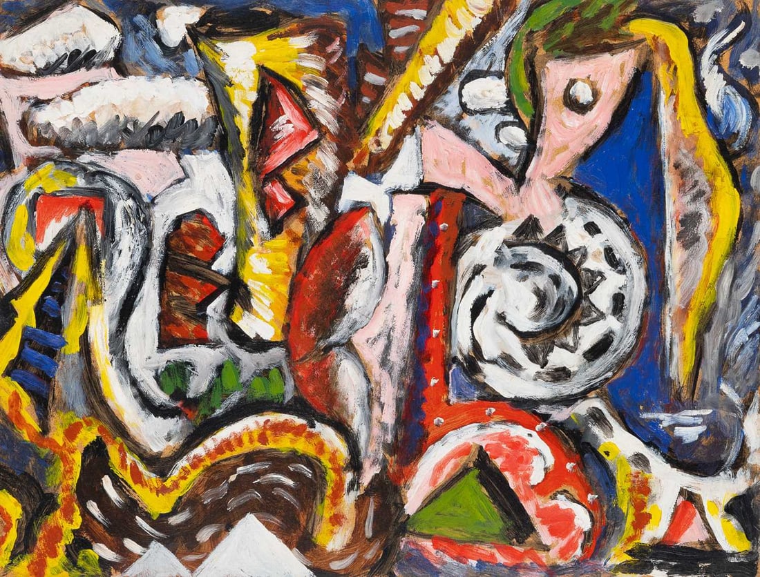 PETER BUSA (Pennsylvania, 1914-1985), Colorful abstract., Oil on panel, 17" x 24". Unframed.Eldred's4.7(499)$7504 hrs Left