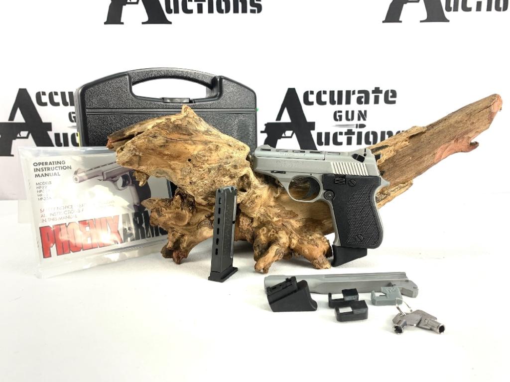 Phoenix Arms HP22A .22 LR 3" Semi Automatic Rimfire Pistol & Box, MFD 1990sMay 01, 2026PHOENIX ARMS RAVEN .25 AUTO Pistol . Very Good. 2.25" Barrel. Shiny Bore, Tight Action Semi Auto6 days LeftPhoenix Arms Raven-25 Chrome Pistol .25 AutoPhoenix Arms HP 22 LR Pocket Pistol W/ Original Box Comes W/ Extra MagazineRUGER 10/22 CARBINE .22 LR Rifle. Very Good. 20" Barrel. Shiny Bore, Tight Action Semi Auto A6 days Left57 MLB Baseball AUTO Numbered or Relic Cards &MoreApr 18, 2026RAVEN ARMS MP-25 .25 AUTO Pistol . Good Condition, Normal Handling Marks. 2.25" Barrel. Shiny Bore,6 days LeftBrowning Custom Shop SA22 SA-22 Grade III Engraved .22 Short 22" Semi-Auto Rifle & Case 1986May 02, 2026North American Arms WASPApr 25, 2026A Pair of Charter Arms AR7 Magazines .22 LR 15 RdsMay 02, 2026BRYCO ARMS 38' .380 AUTO Pistol . Good Condition, Normal Handling Marks. 2 5/8" Barrel. Shiny Bore,6 days LeftEarly Belgian FN Browning SA-22 Grade III Engraved, Wheel Sight Semi-Auto Takedown Rifle C&RMay 02, 2026RAVEN ARMS MP-25 .25 AUTO Pistol. Very Good. 2.25" Barrel. Shiny Bore, Tight Action Semi Auto .6 days LeftBRYCO ARMS 48 .380 AUTO Pistol . Very Good. 3 7/8" Barrel. Shiny Bore, Tight Action Semi Auto6 days LeftCENTURY ARMS BEARCAT .22 RIMFIRE BOLT ACTION RIFLE18 hrs LeftAntique 22?? German Flat Top China Head Doll w/ Cloth Arms & Legs5 days Left