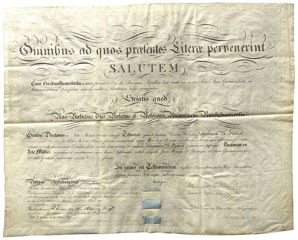 PHYSICK, PHILIP S. - DS, 1835, diploma