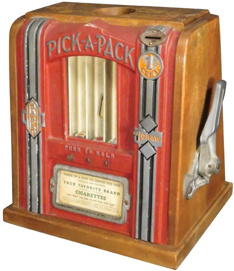 SoldPICK-A-PACK CIGARETTE TRADE STIMULATOR.This is a wonderful Pick-A-Pack windmill trade stimulator in 1¢ and 5¢ denominations, showing great graphics of cigarette packs like Lucky Strike, Chesterfield, Camel and Old Gold, as well aSee Sold Price