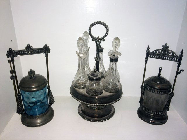 Lot of 2 Victorian Silverplate Items2 hrs LeftLot of Victorian Silverplate Etched Serving Pieces2 hrs LeftLOADED LOT OF BLUE GLASS9 hrs LeftVintage (1970s) British Indiana Glass Biscuit Jar + Salt Cellar, Salt Shaker, & Sugar CylinderFeb 21, 2026Lot of 3 antique cobalt blue porcelain candle holders and clock set gold giltMar 02, 2026Antique Victorian Silverplate Etched Glass Condiment Cruet SetMar 07, 2026Victorian Silverplate Cruet Stand SetFeb 28, 2026Victorian Silver Plate and Cut Glass Cruet Set3 days LeftA British Cut Crystal & Silver Plated Cruet Set, 19th C3 days Left19th C. French Silver Vinegar & Oil Cruet SetFeb 21, 2026NINE AMERICAN PATTERN GLASS PICKLE CASTERS.Feb 19, 2026VICTORIAN ERA SILVER PLATE CRUET SET W/ AMBER GLASSFeb 21, 2026Victorian Sterling Silver Glass Cruet Set by Joseph & John Angell 18314 days LeftVICTORIAN SILVER PLATE AND CUT GLASS CRUET SET.Feb 19, 2026NINE AMERICAN PATTERN GLASS PICKLE CASTERS.Feb 19, 2026AN EDWARDIAN CASED SILVER THREE PIECE CRUET SET5 days Left