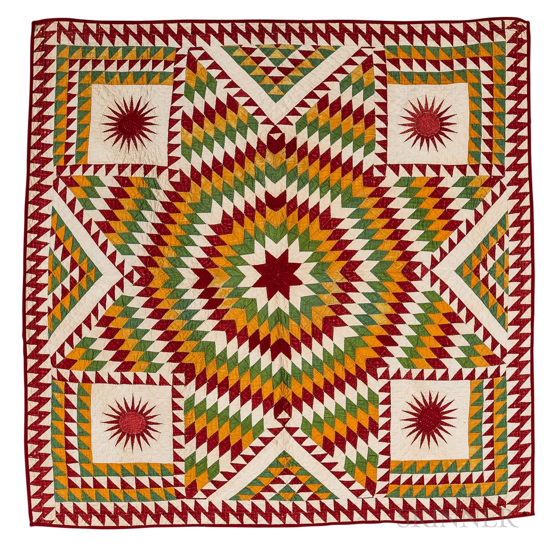 Star Pattern Quilt with black and white border 52 x 36Mar 01, 2026Amish star crib quiltMar 05, 2026AMERICAN "BROKEN STAR / STAR OF BETHLEHEM" PIECED QUILTMar 05, 2026AMERICAN "BROKEN STAR / STAR OF BETHLEHEM" PIECED QUILTMar 05, 2026MID-ATLANTIC "LONE STAR / STAR OF BETHLEHEM" APPLIQUE AND PIECED QUILTMar 05, 2026AMERICAN "LONE STAR / STAR OF BETHLEHEM" PIECED QUILTMar 05, 2026Antique Log Cabin QuiltVictorian Quilt Lancaster County PA, Log Cabin on Square Pattern, c1890Mar 07, 2026Hand Sewn Quilt with Touching Stars, Adams County PA c1900-1910Mar 07, 2026Scrap Patch Star Folk QuiltMar 14, 2026AMERICAN FOLK ART SUNBURST QUILT-STYLE PAINTINGMar 06, 2026MID-ATLANTIC "SUNBURST" PIECED QUILTMar 05, 2026HANDMADE STAR PATTERN QUILT 95" x 80"Mar 06, 2026Victorian Quilt, Trip Around The World Pattern, Lancaster County c1890Mar 07, 2026Victorian Quilt, North Carolina, Turkey Track Pattern with Amazing Turkey LegsMar 07, 2026Fine Quilt Early Red Green Centric Flower & Vine American AntiqueMar 01, 2026