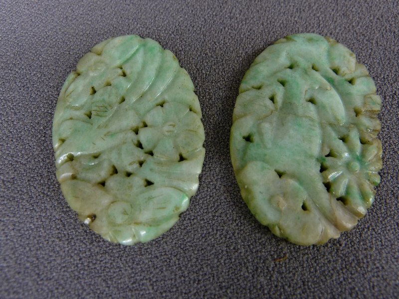PIERCE CARVED GREEN JADE PLAQUES - height 1.75" width