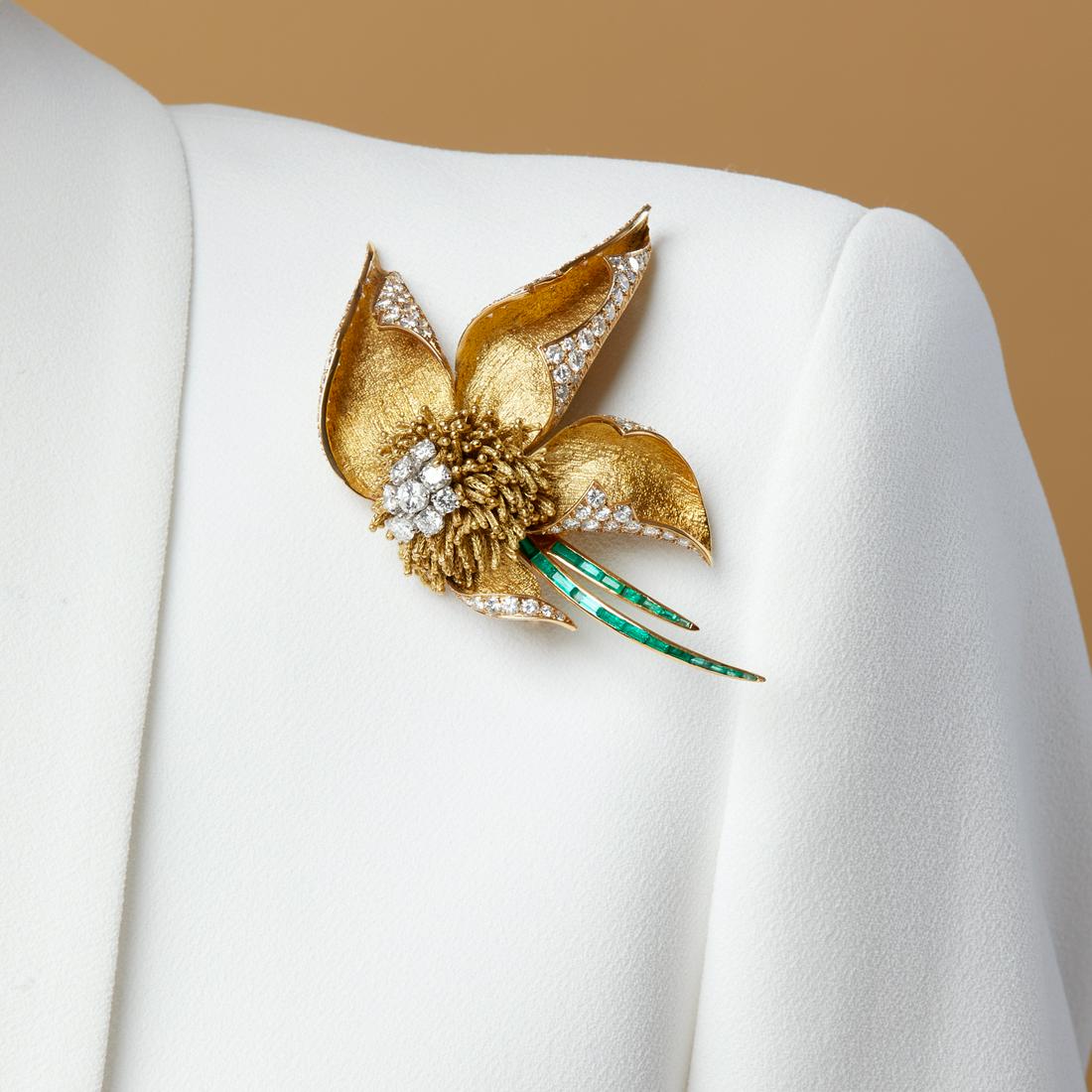 Emerald and Diamond Brooch in 18K Gold and Platinum by Trabert Hoeffer MauboussinBidhaus4.2(842)$1002 days Left