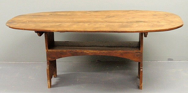 Pine bench table, 19th c., with mortise and tenon