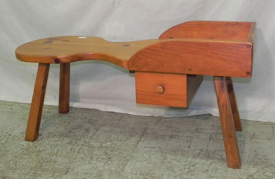 Pine cobblers' bench with one drawer. 42" long.