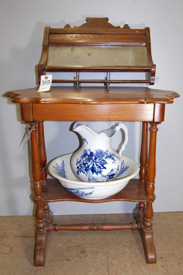 Pine Commode Stand-1860 w/pitcher & bowl set