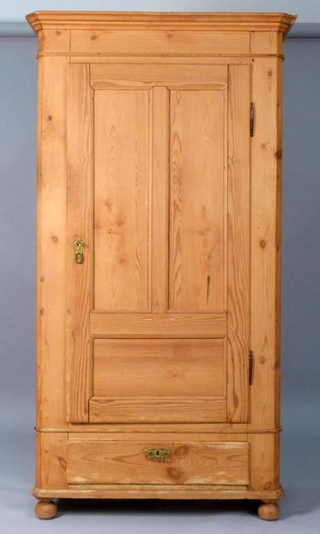 Sold19TH CENTURY CONTINENTAL PINE ARMOIREWith Neoclassical moldings and one dovetailed drawer. Dimensions: H 80.5" x W 49.5" x D 23" Condition: Cabinet refinished; shelves replaced, small repaired loss to trim below doors. Organizing labelsSee Sold Price