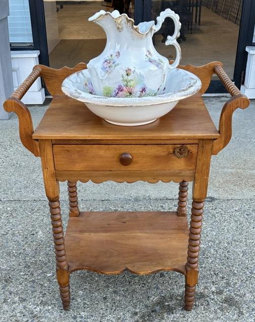 Pine refinished country washstand with towel bars and backsplash, nice condition, structurally
