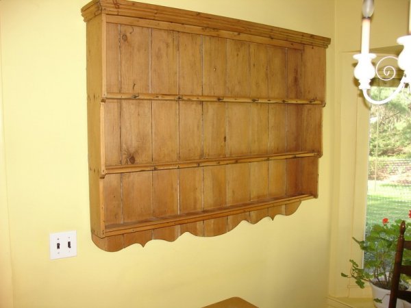 PINE WALL PLATE RACK, HAVING CORNICE MOLDING OVER