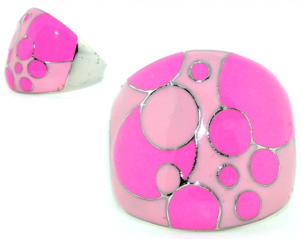 PINK ENAMEL STERLING SILVER RING