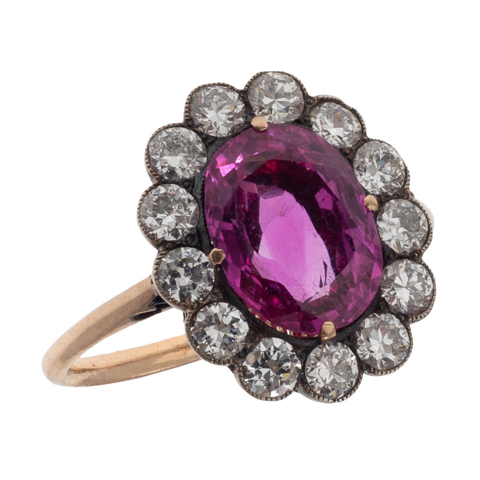 Platinum Cluster Ring with GIA Ceylon Pink Sapphire and Diamond Dual HaloBidhaus4.2(842)$1004 days Left