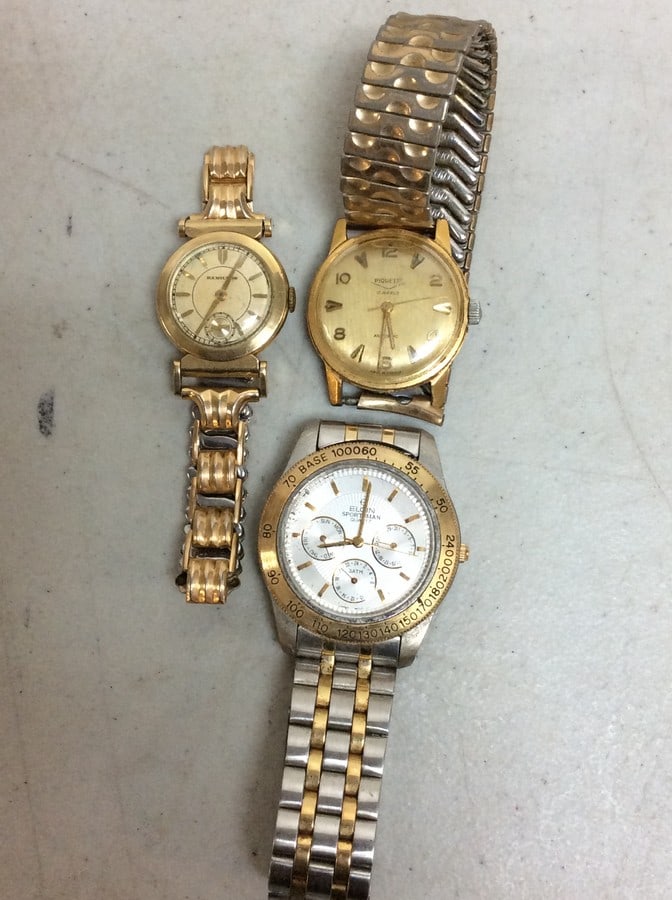 VINTAGE SEIKO MEN'S WRIST WATCHES, LOT OF FOURApr 23, 2026Vintage Watch Lot Rutex Seiko Quartz Relic Elgin Howard Diamond Untested Parts Repair Mixed Lot2 days LeftJewelry. 14 various watches to include Elgin gold filled pocket watch & a selection of wristwatches2 days LeftWatch Collection Ernest Borel Mido Jules Jurgensen Babe Ruth Gruen Running OrderApr 26, 2026Vintage Wristwatch Lot Waltham 17J Incabloc Bulova Accutron Citizen Quartz Ladies Mixed2 days LeftA Collection of Four Men's Wristwatches Including The Clock House and Stefano Valentino3 days LeftVintage Wrist Watch Movements and More5 hrs LeftBulova and Hamilton Gold Filled Wrist Watches5 hrs LeftElgin, Seiko, and Other Men's Designer Watches5 hrs LeftThree Vintage Timex Wristwatches including Self-Wind and Waterproof Models5 days LeftA COLLECTION OF THREE VINTAGE WRIST WATCHES4 days LeftVintage Watches, Movements, and Parts including Elgin, Waltham, and Bulova5 days Left50+ WATCHES INCL. BEN SHERMAN ROTARY TISSOT SEIKO INGERSOLL TOMMY HILFIGERA Pair of Citizen Eco-Drive Stainless Steel WristwatchesMay 03, 202650 WATCHES INCL. SEIKO EMPORIO ARMANI ROTARY AVIA BEN SHERMAN ACCURISTVarious Watches (Anne Klein, Precision, and more)2 days Left
