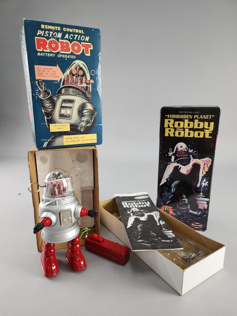 VINTAGE TOY LOTMar 07, 2026Lot Vintage Christmas DecorationsMar 07, 2026Lot: RC Micro Helicopter & Many Varied Accessories1 day LeftASSORTED JAPANESE VINTAGE MECHANICAL TOYS WITH BOXES, LOT OF TWO6 days Left1977-78 Estate Lot of 2 STAR WARS Large Size Action Figure "Chewbacca" & "C-3PO" in boxesMar 15, 2026Lot of Robot and Rocket Kits, Some Sealed.1 day LeftALPS BATTERY OPERATED DOOR ROBOT w/ BOXMar 14, 2026BOXED MASUDAYA ROBBY THE TALKING ROBOT6 hrs LeftYONEZAWA BATTERY OP JUPITER ROBOT w/ BOXMar 14, 2026YONEZAWA BATTERY OP EASEL BACK ROBOT w/ BOXMar 14, 2026YONEZAWA BATTERY OP MIGHTY ROBOT w/ BOXMar 14, 2026YOSHIYA BATTERY OP RADICAL ROBOT w/ BOXMar 14, 2026ESTRELLA BATTERY OP ROBO COM TV ROBOTMar 14, 2026KO BATTERY OP CHIEF SMOKY ROBOTMar 14, 2026ASHITOY TIN FRICTION SPACE ROBOT PATROL w/ BOXMar 14, 2026HORIKAWA BATTERY OP ATTACKING MARTIAN w/ BOXMar 14, 2026