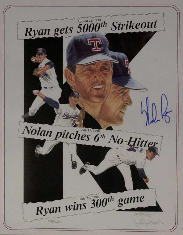 Pitcher Nolan Ryan Lithograph And Pennant Signed