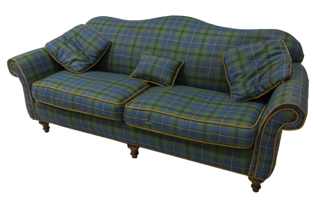 SWIFTEX BLUE AND GREEN-TONE PLAID COUCH