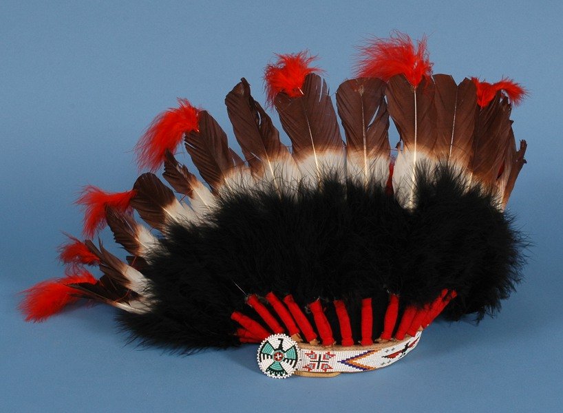 Plains Beaded Feather Headdress Good Condition