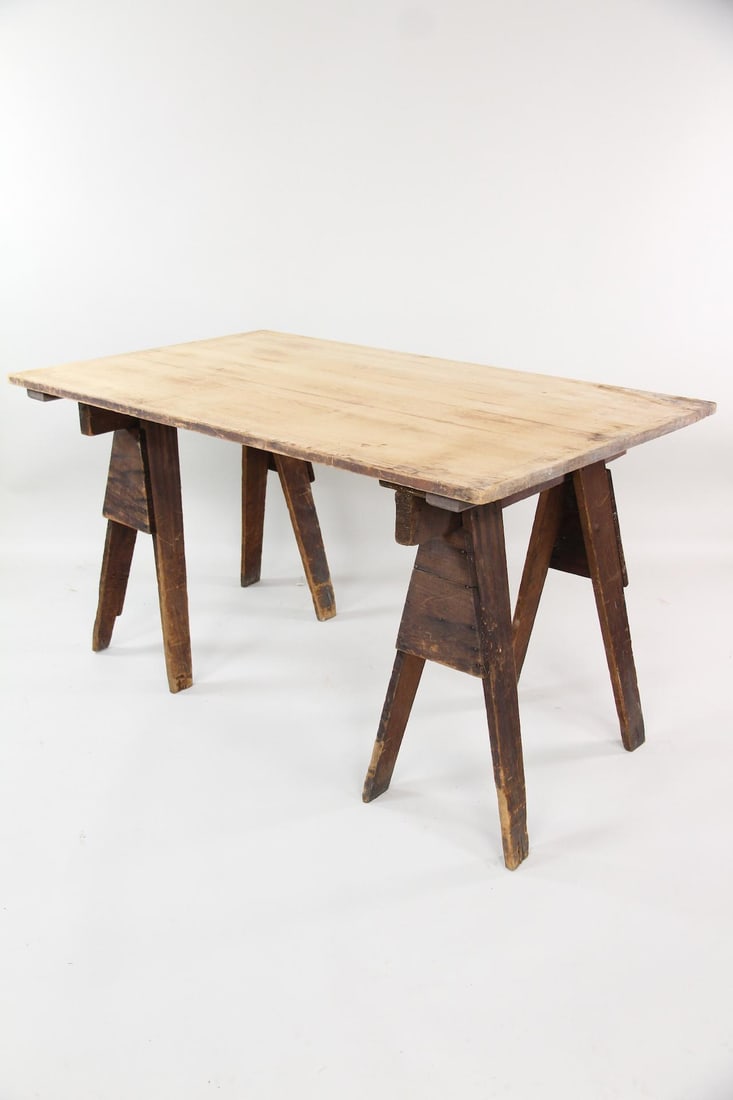Plank Farm Work Table with Sawhorse Base