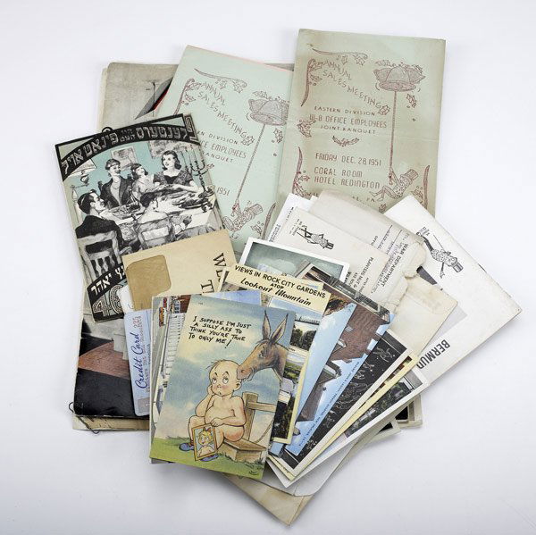 Large Lot Of World War II And Serviceman EphemeraAutograph & Vintage Ephemera Lot – Letters, Documents & Covers – Unresearched CollectionLarge Lot of PaperFeb 25, 2026LOT OF THEATRE PLAYBILLS, PROGRAMSFeb 26, 2026LOT OF RECIPE AND ADVERTISING BOOKLETSFeb 26, 2026Lot of Virginia Cohn Parkum Art (PA 1943-2025)Mar 06, 2026Trade Cards, Valentines, Cooking BookletsFeb 25, 2026Group of Antique Advertising Ephemera5 days LeftVintage Grouping of WWI Era Modern Woodman of America Papers, Booklets, Letters, Etc.Group of Advertisimg Ink Blotters5 days LeftLARGE COLLECTION OF CHILDREN'S BOOKS, EDUCATIONAL MATERIALS, AND EPHEMERA.2 days LeftGroup of vintage Catalogs and Price Guides5 days LeftGroup of Assorted Vintage Ephemera5 days LeftGroup of 1830s-1870s Lumber Letterheads5 days Left"Journal of the American Printing Association", 15Apr 30, 2026Group of Vintage Catalogs and Booklets5 days Left