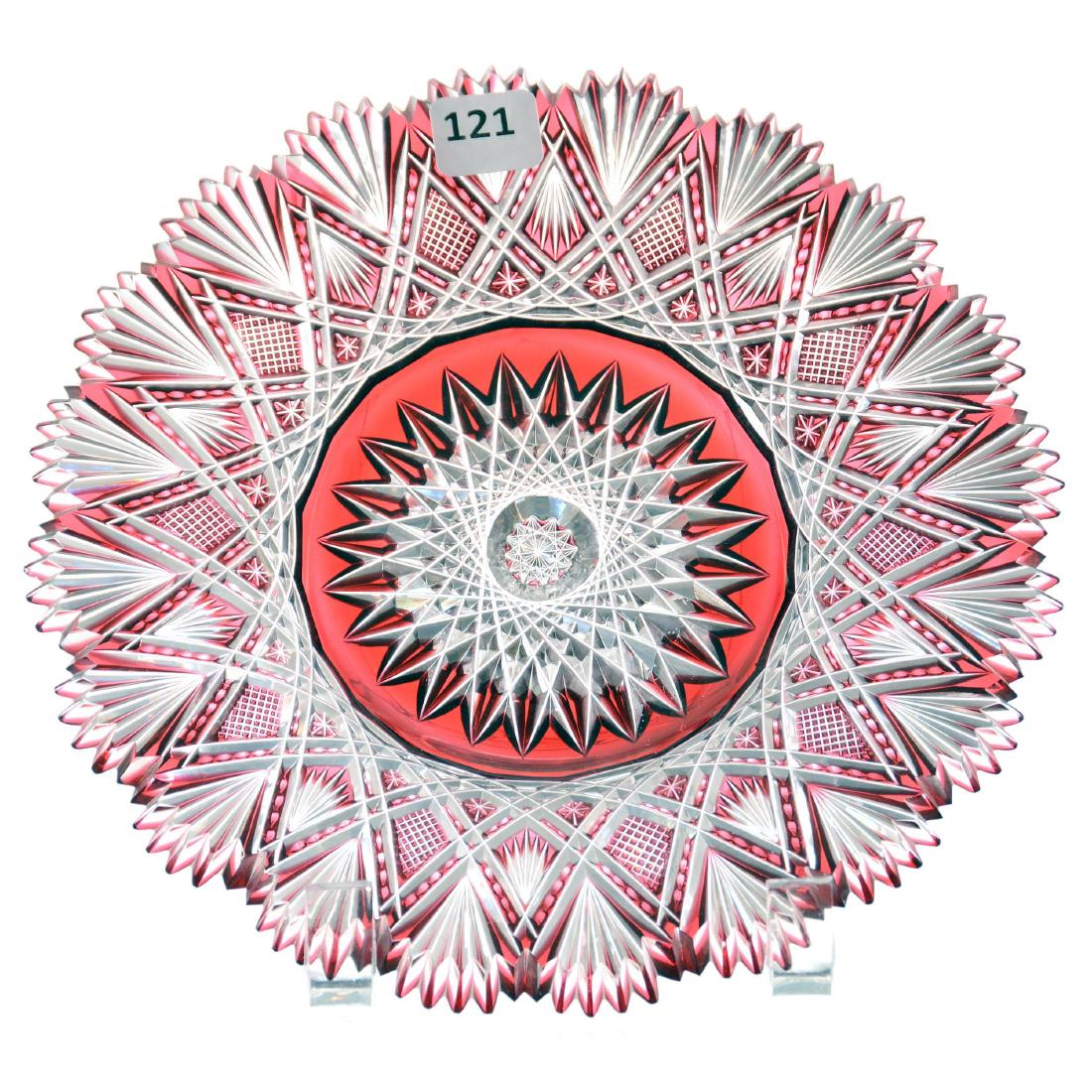 Plate - 8" - Cranberry Cut to Clear - Parisian Pattern