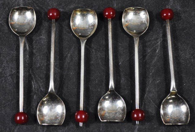 Plated and Bakelight Cherry Cocktail Spoons, 6pcs