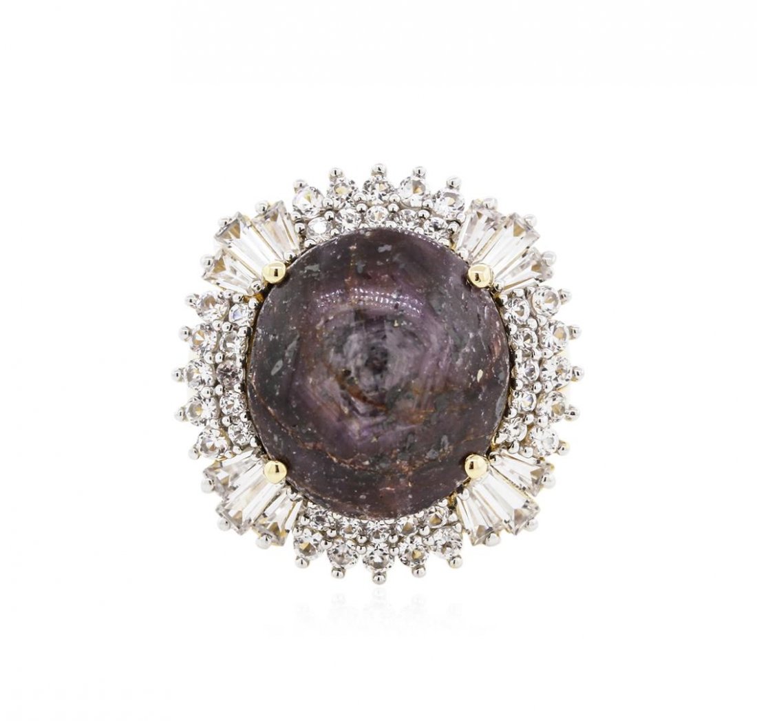 Sold40.55 Ct Ruby & White Sapphire Ring GLASterling setting with 40.55 carat star ruby and 1.9 CTW white sapphires. Size 8.5. Includes AIG appraisal report. IMPORTANT: Before bidding, please read the terms and conditions. When you registered fSee Sold Price