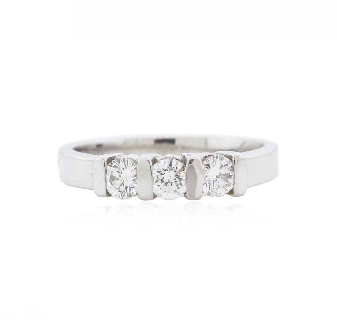 SoldAntique Platinum & 1.06 CTW Diamond RingCenter Old European cut diamond of approximately 0.4 carats flanked by two 0.25 carat diamonds. The diamonds are approximately SI1 clarity and J/K color. Weight 3.0 grams. Ring size 6.5.See Sold Price