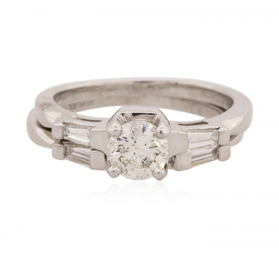 SoldLadies Platinum Wedding Set 1.39 ctw. Center StoneThe two ring wedding set is soldered together and consists of a diamond engagement ring and diamond band. The engagement ring is centered with one (1) round brilliant cut diamond set into a four-prongSee Sold Price