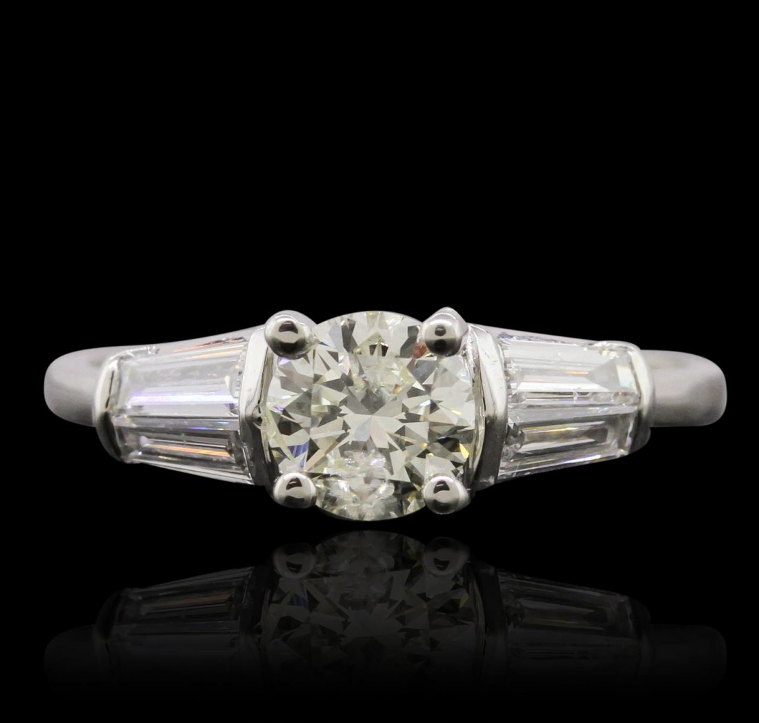 Sold2.18ct Platinum Diamond RingPlatinum 2.18ct round brilliant and baguette cut diamond ring, size 6.75. A round brilliant cut diamond is mounted in the center of the ring. color E, clarity I1. Round brilliant and baguette cut diamSee Sold Price