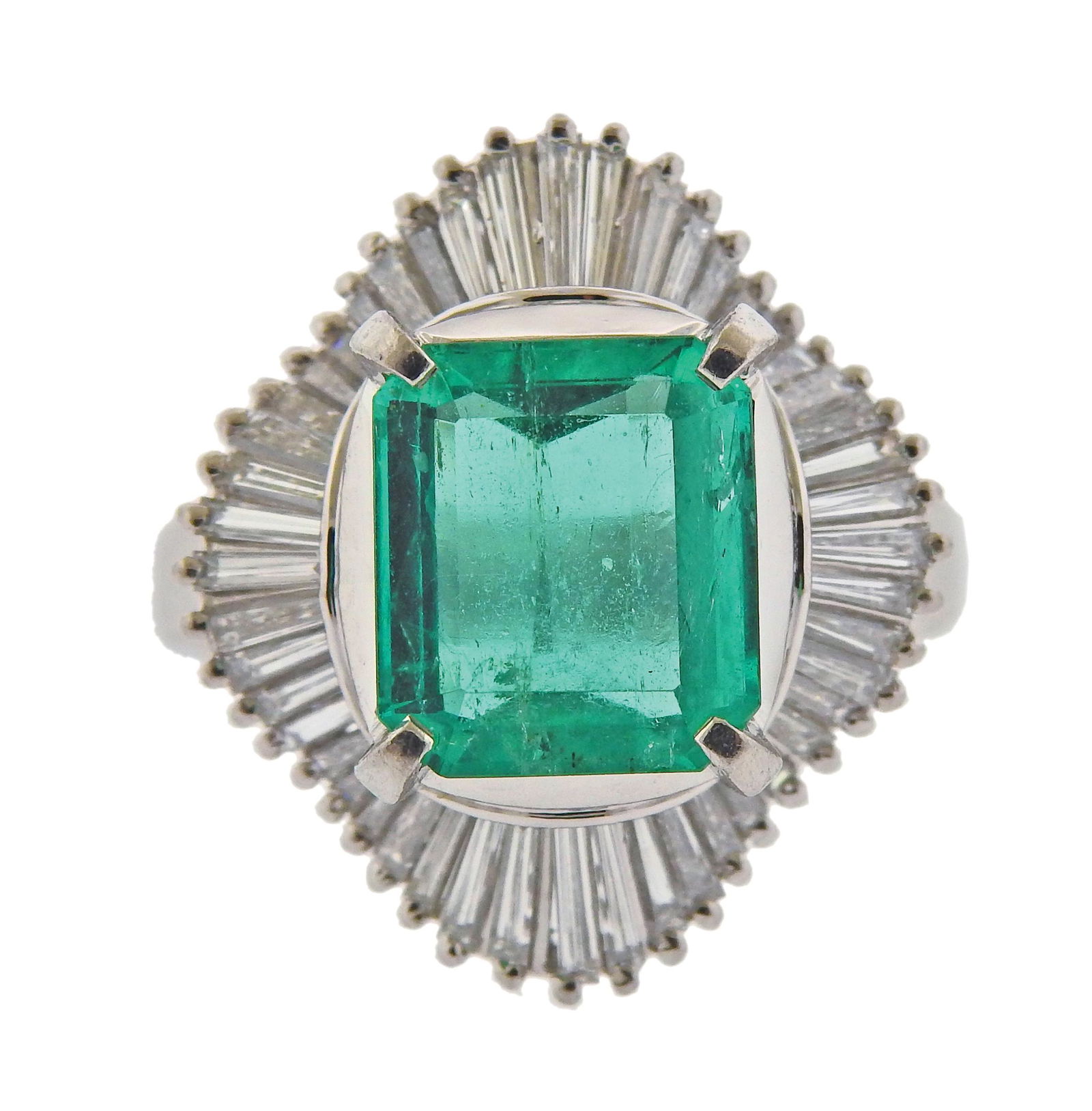 Platinum Ladies Ring with 4.03ct GIA Certified Emerald and 0.77ct tw Adjacent DiamondsRiverside Galleries4.4(201)$505 days Left