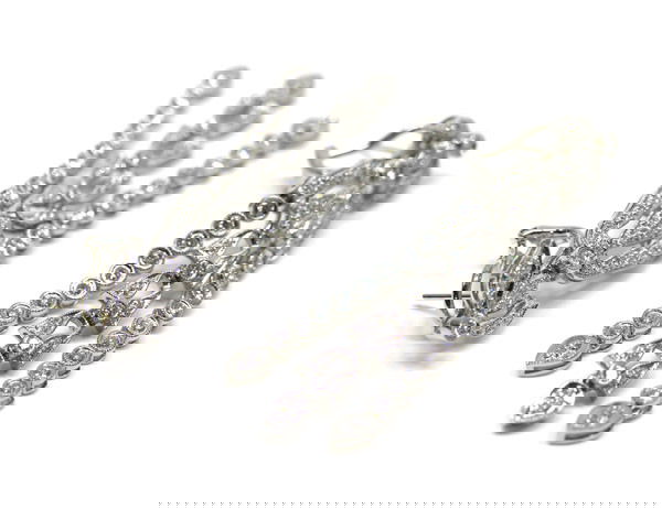 Pair of Natural Diamond drop Earrings, 14KT White Gold # 2626