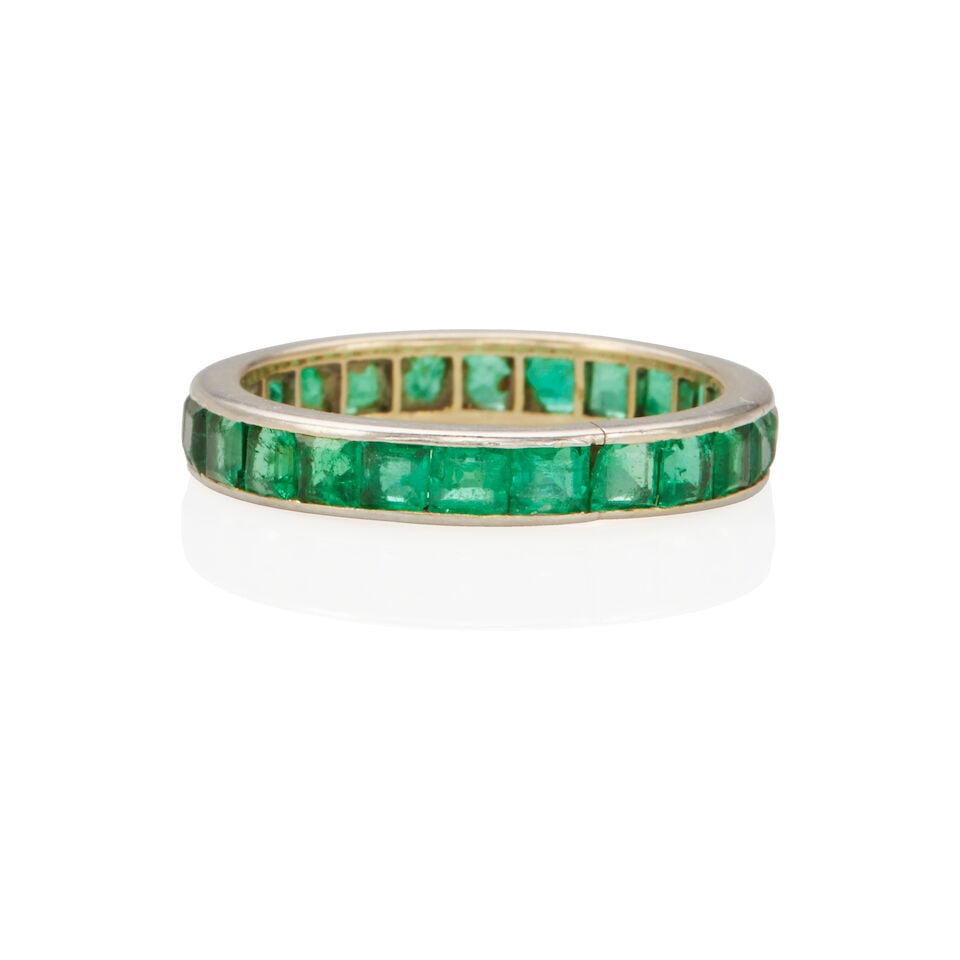PLATINUM AND EMERALD ETERNITY BAND RING