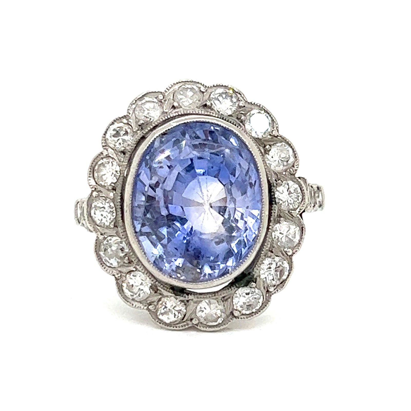 18K White Gold Ladies Ring with 3.34ct Sapphire and 2.63ct tw Adjacent DiamondsRiverside Galleries4.4(202)$506 days Left