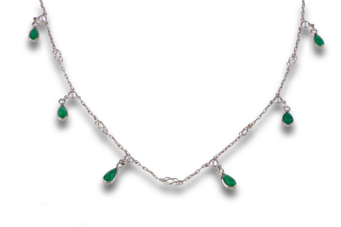 18K White Gold Ladies Necklace with 8.35ct Emeralds and 9.74ct tw Adjacent DiamondsRiverside Galleries4.4(203)$506 days Left