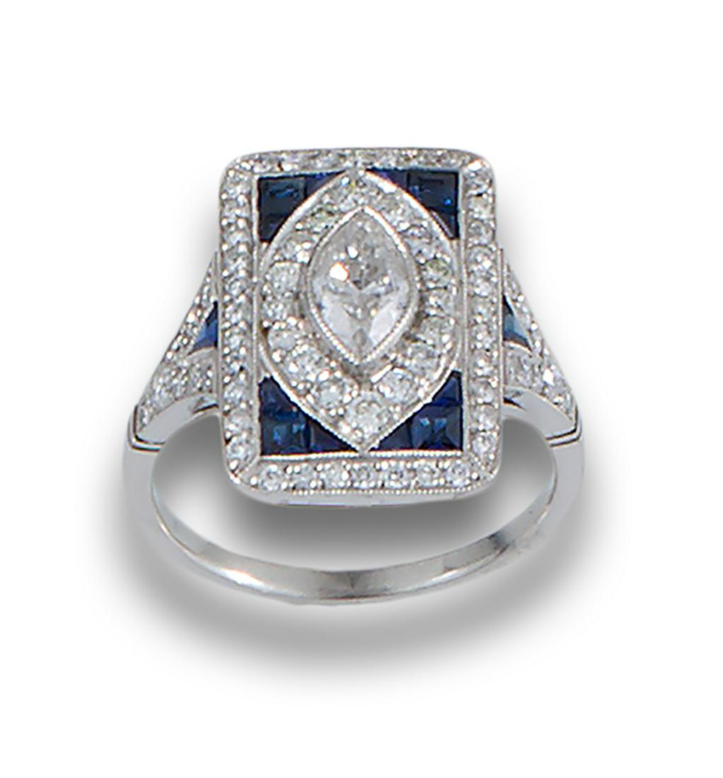 PLATINUM DECO RING DIAMONDS SAPPHIRES