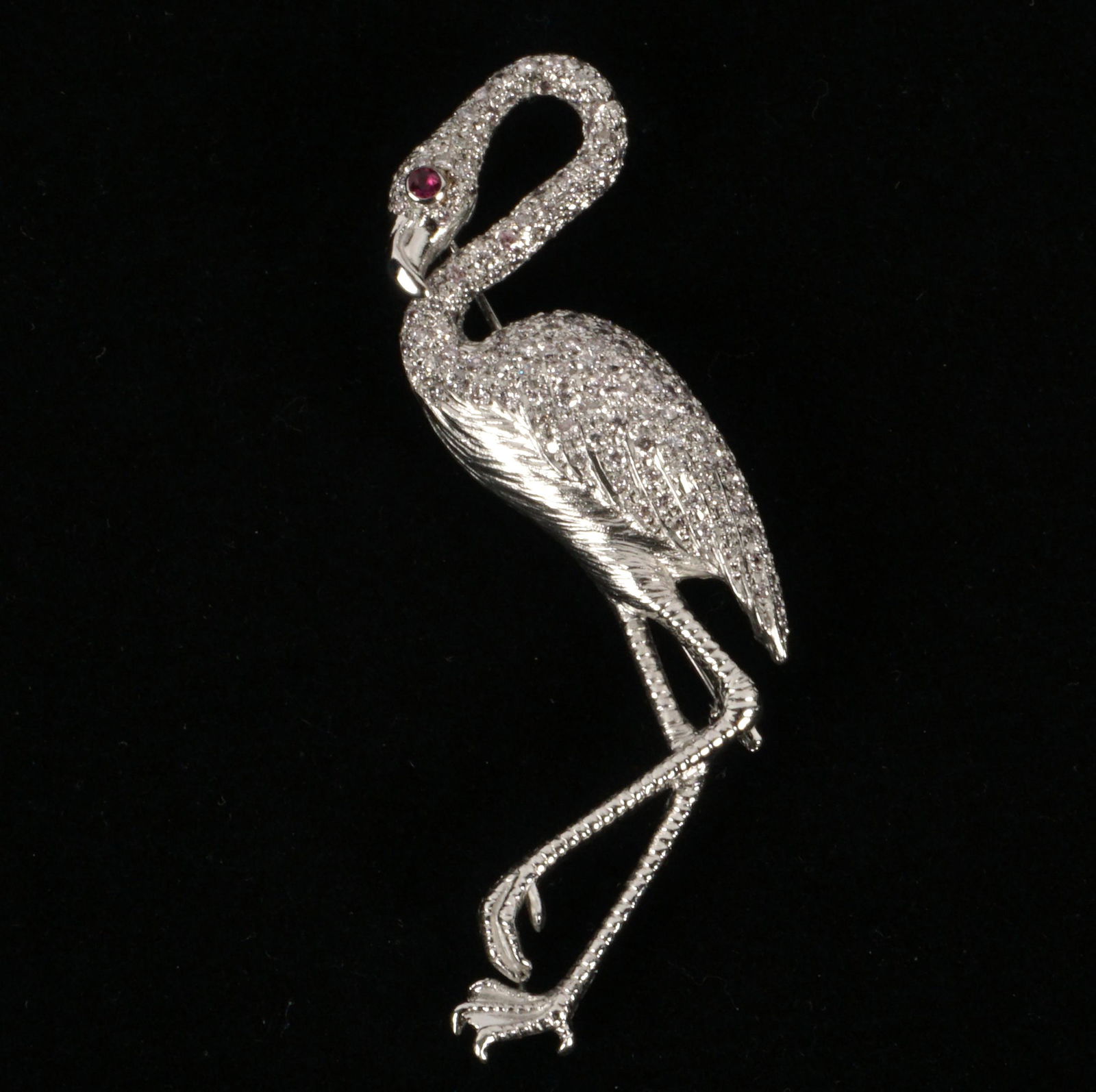 Platinum Diamond and Ruby Flamingo Brooch